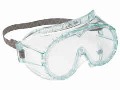 General-purpose cover-type protective goggles of soft vinyl plastic. Comfortable and shaped to conform to facial contours. Fit easily over personal glasses. Top and bottom edges perforated for direct ventilation. Clear, one-piece .060" acetate lens is replaceable. Lightweight adjustable elastic strap. Meets ANSI Z87.1989 and CSA Z94.3.