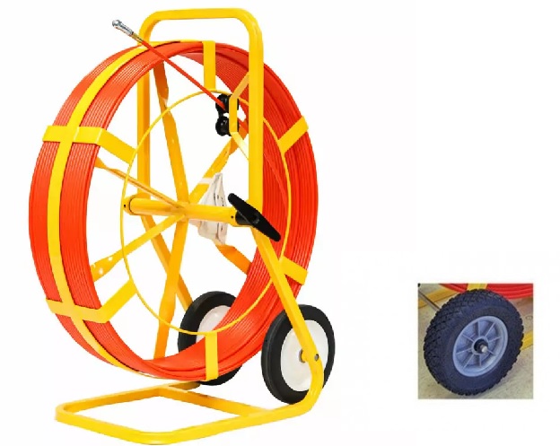 500 Ft. Of 3/8-Inch Diameter Fiberglass Rod Marked Every 1M. Ideal For 2" - 4" Conduit 7" Bend Radius 1,000-Lb Pull/Tensile Strength Frame Handle And Wheels For Transport Friction Brake And Safety Roller Feed Operates Vertically Or Horizontally Canvas Pouch Accessory Kit Included: Pulling Eye, And End Ferrule Dimensions: 39" X 32" X 18"