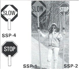 SSP-1 24 inch octagonal STOP/SLOW reflectorized 8 ft 3 inch tall SSP-1T 24 inch octagonal STOP/SLOW reflectorized with telescoping handle SSP-2 18 inch octagonal STOP/SLOW non-reflectorized 8 ft 3 inch tall SSP-4 Aluminum hand-held octagonal STOP/SLOW