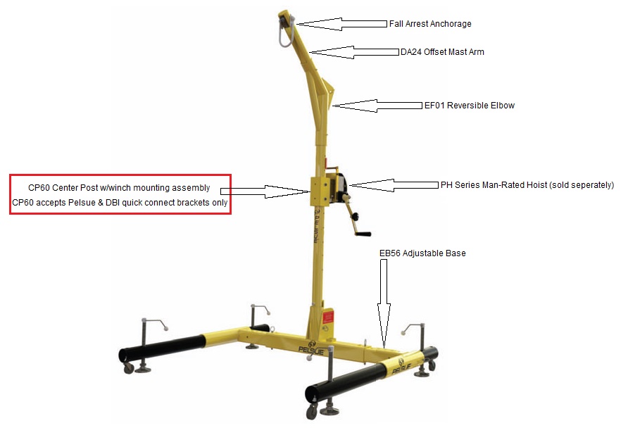 Pelsue Cp60 Davit Center Post W/Winch Mounting Bracket, Alum., 60” Ht. New Pelsue Davit Systems Overview