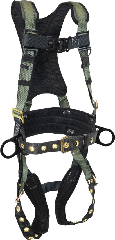 Frenchcreek 22850B Stratos Full Body Harness, W/Strato-Lite Comfort Pads On Shoulder, Back And Legs And Removable Tool Belt. Green/Black, 6 Point Adjustment W/Tongue Buckle Legs And Hip Dee Rings