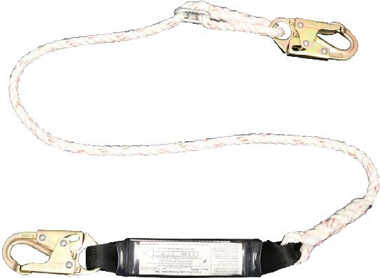 Frenchcreek 400Ab Rope Shock Absorbing Lanyards (With Shock Absorbing "Pack") 6' X 1/2" 3-Strand Shock Absorbing Adjustable Length Rope Lanyard, #74N Locking Snaps Each End
