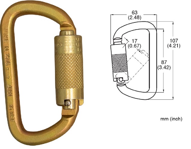 Frenchcreek 354-1 Snap Hooks & Carabiners Twistlock Carabiner 1/2" 3600 Lb Z Rated Gate Opening