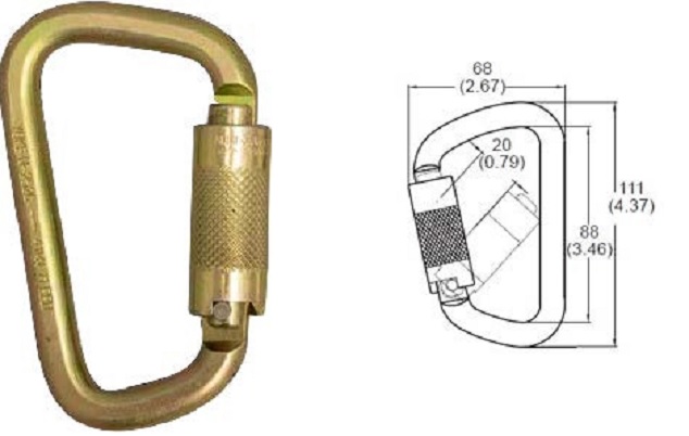 #354-5 Steel Twist-Lock Carabiner, 3/4" Gate Proof Loaded To 3,600 Lbs. Minimum. Breaking Load: 5,000 Lbs.