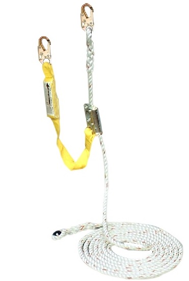 50' X 5/8" Polyblend Rope 5/8" Manual Rope Grab Permanently Installed On Rope 3' Shock Absorbing Lanyard #Z74 (3/4" Opening) Locking Snaphook