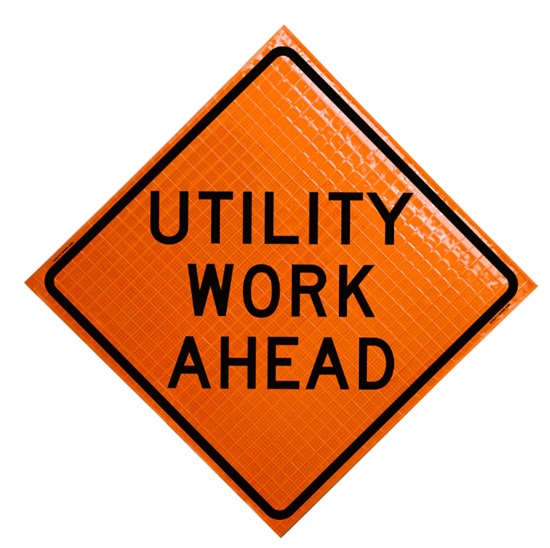 P/N Df-04204 Utility Work Ahead Sign Size 48 Inch Rollup Sign Sign Type Duralatch Material Oralite Super Bright