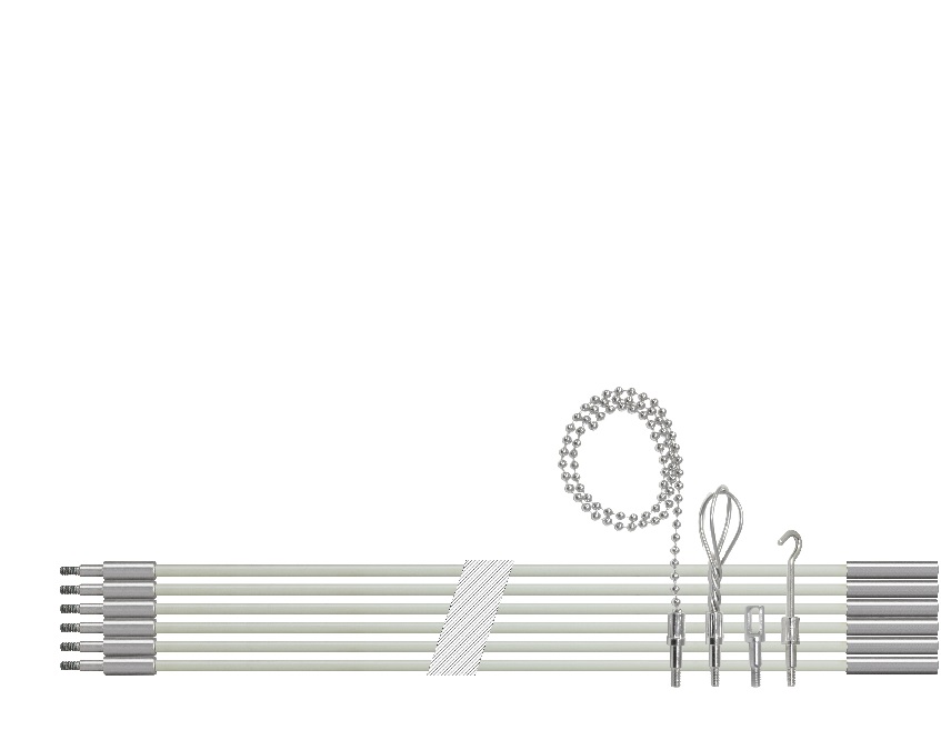 Six 5’ Long X 3/16" Diameter Glow Rods (30 Ft Long When Assembled) One Eyelet, Ball Chain, Whisk, And Hook Attachment Heads Reusable Plastic Storage Tube (Kit Packaging)
