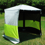 Provides Portable Shade:Sets Up In Seconds Industrial Strength:Made For Daily Commercial Use Pops Up In Seconds:No Loose Parts Or Finger Pinching Frames Opaque Roof Fabric:Also Used In Airplane Windshield Covers! Three Mesh Sides Provide Ventilation Removable Fly For Blocking Late Afternoon Sun Carry Case Included Custom Colors & Branding Available Can Be Set Up In 24 Seconds