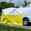Includes: Clips And D-Rings With Interlocking Flaps Solar Blocking Top 30? Wide Dual Zipper Roll-Up Rear-Access Door Heavy-Duty Frame Roll-Up Front Flaps Three 14? Cable/Ventilation Sleeves 2 Screen Windows With Roll-Up Flaps 3 Tie-Down Cords Through The Hubs 7 Stakes And 4 Ground Loops Carrying Case