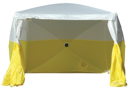 One-Piece, Instant Set Up No Loose Parts Two Screened Windows (Most Models) Tie-Down Cords Through Hubs Ground Flaps For Weight Anchoring Rubber, Non-Slip Feet Exterior, Roof Level D-Rings Carry Case & Tent Stakes Blower Hose Port All White Tent