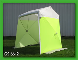 The Pop N Work Fx-8610 Is A 8' X 6' Ground Fx Tent With A Full-Width Rollup Door With Velcro Closure On The Front. The Fx Tent Has An X-Frame In The Rear Wall. When The Side Frames Are Popped Out, It Telescopes Automatically Giving The Tent More Stability In Windy Conditions And Extra Support Important For Large Tents.