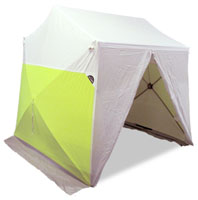 The Pop N Work Fx-10811 Ground Fx Tent Features A Single Zipper 'A' Shape Door On The Front Of The 10' X 8' Tent. The Fx Tent Has An X-Frame In The Rear Wall. When The Side Frames Are Popped Out, It Telescopes Automatically Giving The Tent More Stability In Windy Conditions And Extra Support Important For Large Tents. Also, 14' Ropes Are Attached To Each Corner Of The Tent At The Roof For Windy Conditions.