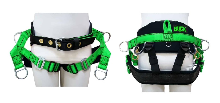 One Accessory Ring For First Aid Two Accessory Loops Forged Medium Dee Rings Interlock Leg Strap Buckles Suspender Connection Loop Medium Size Dee Rings (5000 Lbs.) 7" Tuff Duck Covered Back Support With One Layer Of Rigidity Friction Buckles For Easy Adjustability And Positive Locking Multiple Adjustments For An Ideal Center Of Gravity Two Rugged And Versatile Handsaw Snaps Heavy-Duty Elastic Extensions For Leg Pads Or Batten Seat