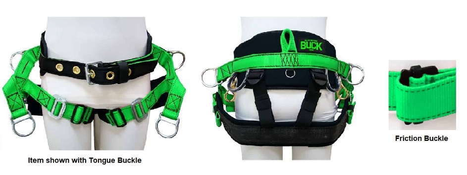 Product Number: 1219/1291T Product Name: Classic Pinnacle Saddle Buckle Type: Friction or Tongue Buckle Buckle Material: Steel Number of D-rings: 2 Positioning, 2 Floating D-ring Material: Steel Belt Strap Material: Nylon Back Pad Material: Tuff Duck Accessory Loops: Yes Tape Thong: No Removable Belt Strap: No Floating Suspension Ring: No Full Floating D-rings: Yes Tool Loops: No Pouch Tabs: No Leg Straps: Yes Leg Strap Connect: Interlocking Buckles Back Pad Width: 7" Belt Strap Width: 1.75" Thread/Stitching: Nylon Product Type: Work Positioning User Weight Capacity: 350 lbs. Weight: 4.5 lbs. Standards: ASTM F887 Made in USA?: Yes