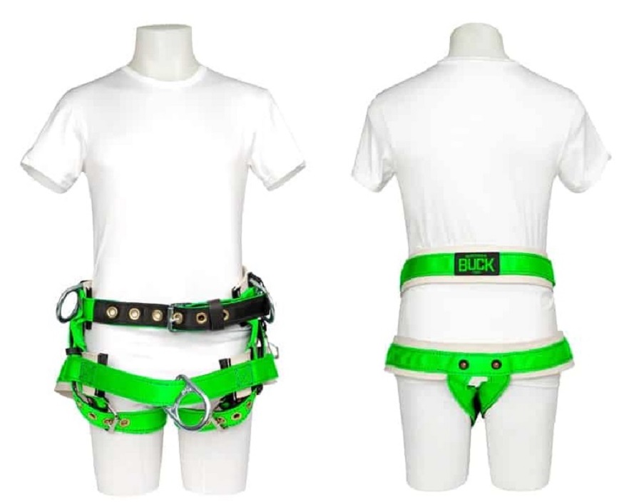 Product Number: 1379 Product Name: Saddle Buckle Type: Tongue Buckle Buckle Material: Steel Number Of D-Rings: 2 Positioning, 1 Floating D-Ring Material: Steel Belt Strap Material: Nylon Back Pad Material: Double Thick Cotton Webbing Accessory Loops: No Tape Thong: No Removable Belt Strap: No Floating Suspension Ring: No Full Floating D-Rings: Yes Tool Loops: No Pouch Tabs: No Leg Pads Yes Leg Pad Connect: Tongue Buckle Back Pad Width: 3" Belt Strap Width: 1.75" Thread/Stitching: Nylon Product Type: Work Positioning User Weight Capacity: 350 Lbs. Weight: 4 Lbs. Standards: Astm F887 Made In Usa?: Yes