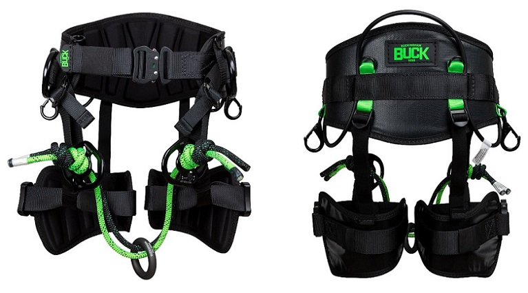 Specifications Model Number: 17911 Product Name: The Buckcraft™ Waist Strap Connection Type: Quick Connect Buckle Buckle Material: Aluminum Suspension Adjustment Type: Friction Buckles Leg Strap Connection Type: Quick Connect Buckle Buckle Material: Aluminum Number Of Dee Rings: 2 D-Ring Material: Aluminum Belt Strap Material: Nylon Back Pad/Leg Pad Material: Compression Molded Padding W/ Tnx Outer Shell Accessory Snap / Ring: Yes: Snaps (Qty 2) / Rings (Qty 2) Floating Suspension Ring: Yes (200A) - 1-7/8" Eye Aluminum Ring Suspension Ring Mbs: 5,000 Lbs. / 23Kn Bridge Type: Double Rope Bridge Bridge Material: 3/8" Static Rope (Black W/ Green Tracer & Green W/ Black Tracer) Bridge Length: 40" Minimum Required Tail Length Labels: Yes (3" Minimum Tail Labels) Bridge Connection Type: Aluminum Rigging Paws Suspender Attachment Rings: Yes Gear Loops/Hangers: Yes (3) First Aid Pouch Storage Yes Back Pad Width: 8" Waist Strap Width: 1 3/4" Thread / Stitching: Nylon User Weight Capacity: 350 Lbs. Weight: 4.64 Lbs. Standards: Astm F887 Made In The Usa?: Yes