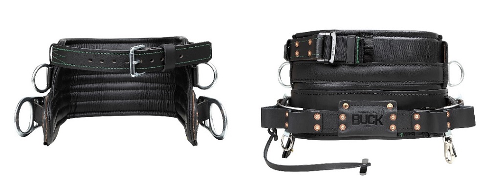 Ultimate Mobility & Freedom Of Movement. The 4 D-Ring Belt Supports The Use Of Wood Pole Fall Restriction Devices, Like The New Buckingham Ez Squeeze™. 4 Stacked & Fully Floating D-Rings. Fully Padded High Back Wrapped In High-Quality Ultra-Soft Leather For That Instant "Broke-In" Feel. Your Back Will Thank You For The Fully Padded 9" High Back. The Buck Mobility™ Offers A Man-Rated Upper Belt Strap That Is Bound To The Lower Work Positions Strap By 1 3/4" Web.