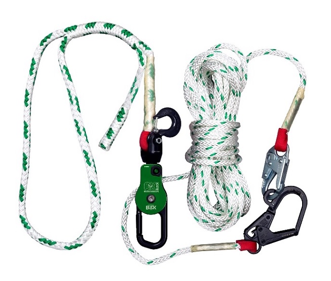 An Ox Block® Clevis Top W/ Buck Pin That Features A 4' X 5/8" Adjustable Sling, Black Hook, And An 80' Ox Hook™ Handline Assembly.