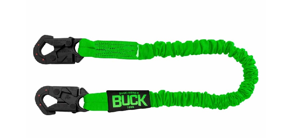 The New Buckohm™ Buckyard, An Energy Absorbing Lanyard With Dielectric Hardware! This New Lanyard Is Available In Two Color Options; Buckviz Safety Green Or Black. This Version Of The Buckohm™ Buckyard Should Be Used With A Full Body Harness. Buckingham Recommends The Buckohm™ Dielectric H-Style Harness (68L9Eq12) Which Also Has Dielectric Hardware. The Buckyard™ Stretch Has The Same Benefits Of The Buckyard™ But With The Addition Of An Elastic Bungee That Expands/Stretches When Working. A 6’ Lanyard Will Expand/Stretch To 6’ When Worked And Will Retract To 44", Minimizing The Length Of Webbing The End User Has While Working; Reducing Tripping Hazards.