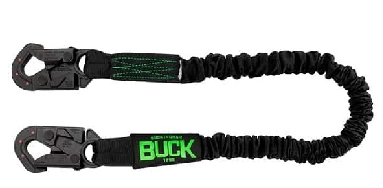 Product Number: 8+G+G7D16S1 / 8+G+G7E16S1 Product Name: Buckohm™ Black Buckyard Stretch With Dielectric Snaps Overall Length: 4', 4.5', 6' Number Of Legs: 1 Connector Type: Locking Dielectric Snaphooks Connector Material: Dielectric Material Type: Nylon Web Adjustable: No Adjustment Type: N/A Maximum Elongation: 48" Maximum Free Fall: 6' Average Arresting Force: 900 Lbs. Red Wear Center: No Weight: 2.5 Lbs. User Weight Capacity: 350 Lbs. Product Type: Fall Arrest / Fall Restriction Standards: Ansi Z359.13, Astm F887, Csa Z259. Made In Usa?: Yes