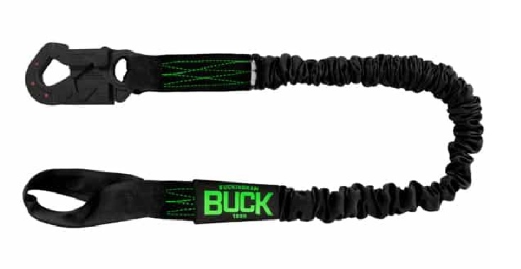 A 6’ Lanyard Will Expand/Stretch To 6’ When Worked And Will Retract To 44". Dielectric Locking Snap Hook On One End And Web Loop On The Other End. Web Loops Can Be Hitched To A Dielectric Or Steel D-Ring. Dielectric Snaps Can Be Attached To A Web Loop (With Wear Guard) Or Dielectric Steel D-Ring. Available In Buckviz Safety Green And Black