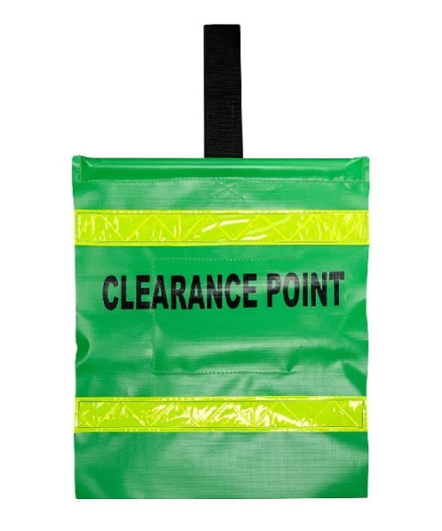 A Hi-Visibility Green "Clearance Point" Flag With Two Reflective Strips For Easy Visibility When Working At Night. Hook And Loop Strap For A Secure Attachment.