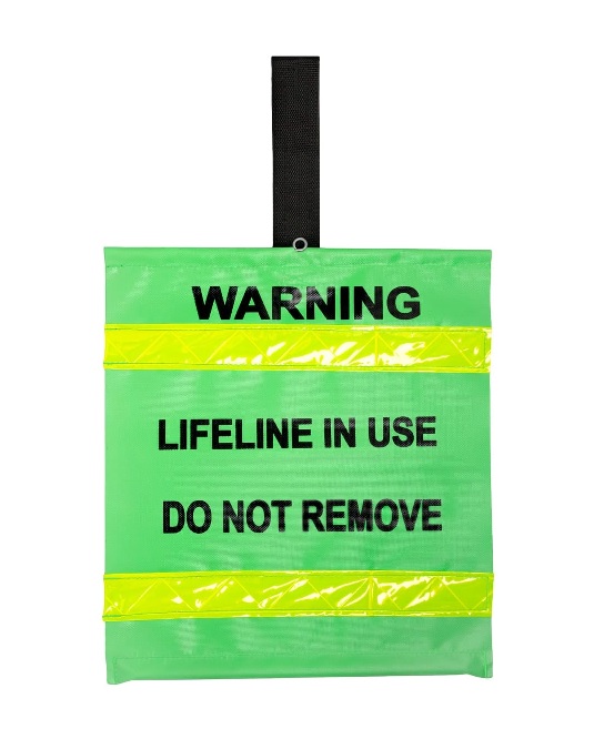 A Hi-Visibility Green Rfp Warning Flag With Two Reflective Strips For Easy Visibility When Working At Night.