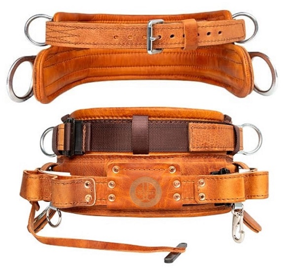 The 4 D-Rings Support And Make The Use Of Wood Pole Fall Restriction Devices Extremely Simple. We Recommend The Ez Squeeze™. Wrapped In High Quality Ultra-Soft Distressed Leather For That Instant “Broke-In” Feel.