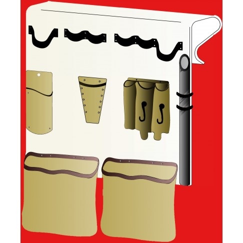 Copolymer Tool Organizer Board 18 X 20 X1/4" With Leather Tool Loops, Leather Knife Sheaths, Leather Tool Holder, Leather Bags And Bit Holder For Bucket Trucks And Aerial Lifts.