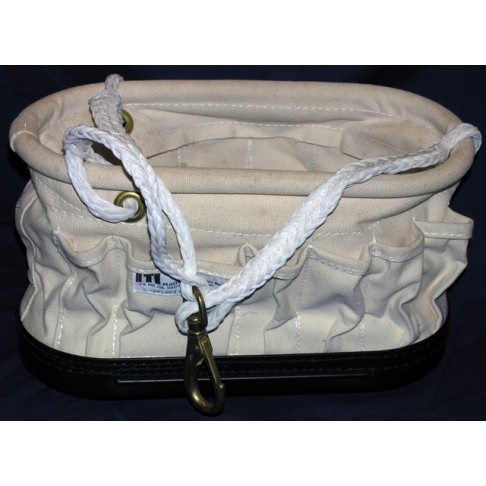 Canvas Tool Bag, 15 Outside Pockets, 14 X 7 X 9" With Tri Rope And Swivel For Bucket Trucks Or Aerial Lifts.