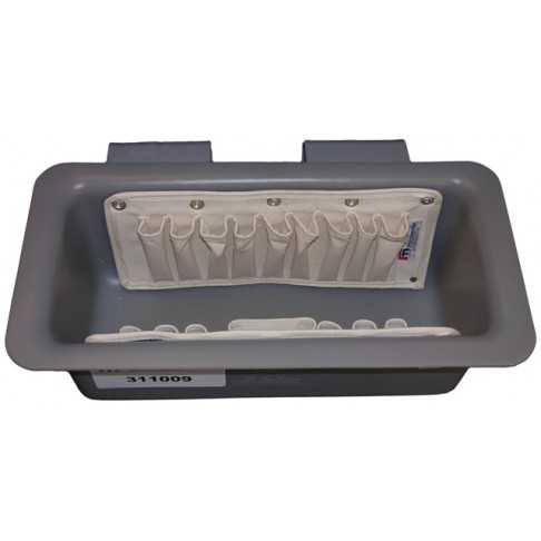 Our Popular 1Tb Copolymer Tool Tray With 7 And 9 Pocket Omni Pouches, 19 X 8 X 8", Outside Mount, Gray For Bucket Trucks Or Aerial Lifts.