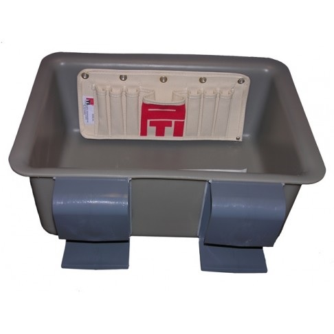 Double Wide Copolymer Tool Tray With 7 Pocket Omni Pouch, 20 X 14 X 8", Outside Mount, Gray, For Bucket Trucks Or Aerial Lifts.