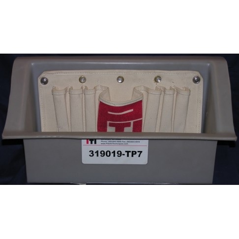 Copolymer Tool Tray, 17.5" X 10.5 X 5.5", Inside Mount In Gray With A 7 Pocket Tool Pouch Installed And 2.5" Brackets For Bucket Trucks Or Aerial Lifts.