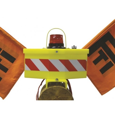 Weatherproof Copolymer Pole Warning Light, 6 Volt Battery, Red Beacon And Webbing And Ratchet System.