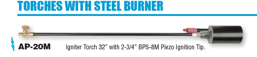 Goss Ap-20M 32" Lp Torch With Igniter Tip Is Designed Perfectly For Thawing Ice, Burning Weeds, Heating And Melting Metal. Heat Output Rate Of 500,000 Btus. Goss Designed The Ap-20M With A Cutting Edge Push Button Piezo Ignition System So That All You Have To Do Is Push The Button For Ignition.