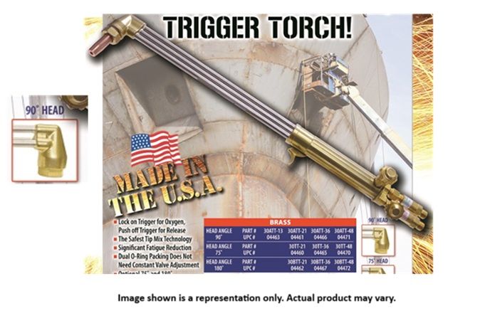 Uniweld P/N 30Att-13 Cutting Torch Head Angle 90 Degree Torch Length 13 Inch Weight 45 Oz. Lever Position Trigger Type A Style Cutting Capacity 12 Inches