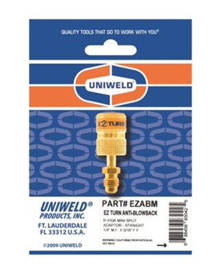 Uniweld Ezabm Ez Turn Anti-Blowback R410A Mini Split Adaptor, Straight 1/4 Inch M.F. X 5/16 In F.F.