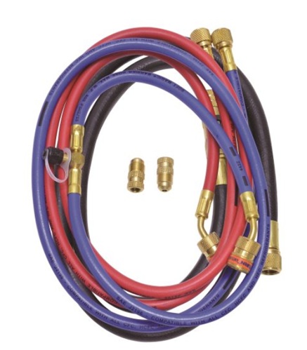 Uniweld P/N Ezf5Hs 60 Inch (150Cm) Fast-Flo Hose Set Red Hose: Ez Turn 1/4 Inch Hose Blue Hose: Ez Turn 1/4 Inch Hose With An Ez Access “T” Fitting™ For Micron Gauge Connection. Black Hose: 3/8 Inch Charging And Vacuum Hose With Full Flow Ball Valve Shutoff T Fitting: Blue Hose Adaptors: (2) 3/8 Inch X 1/4 Inch Tank Adaptors For 3 Times Faster Vacuum Than Standard 1/4" Hose