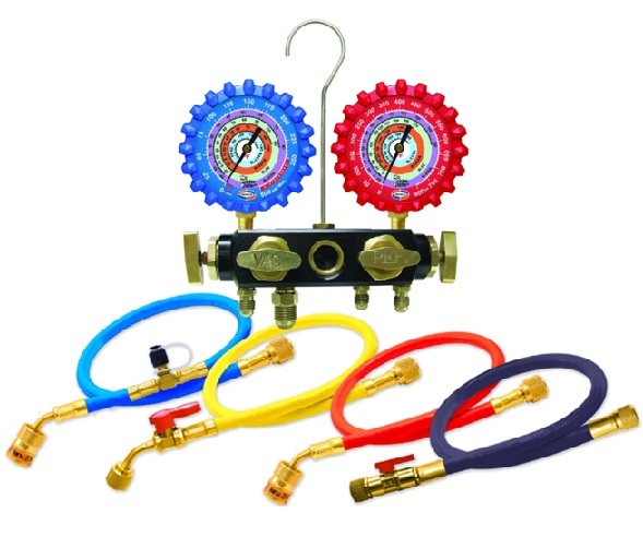 Uniweld’S (Aluminum Manifold With 3-1/8 Inch Npf® Gauges) Anodized Aircraft Aluminum Block Body With 4 Ports For Charging, Evacuating And Testing A System Without Changing Or Removing Hoses. – 3/8 Inch Sae Port Increases Vacuum Capacity And Saves Time – Optical Sight Glass For Monitoring Refrigerant – Durable, Brazed Brass T-Handles Provide Smooth, Precise Adjustments – Npf® No Pointer Flutter® 3-1/8 Inch Gauges With Color Coded Refrigerant Scales And Color Coded Gauge Boots – 5 Ft. Hose Set; Red Ez Turn Hose, Blue Ez Turn Hose With 1/4 Inch Male Flare”T” Fitting, Yellow Ball Valve Hose And Black 3/8 Inch Ball Valve Hose