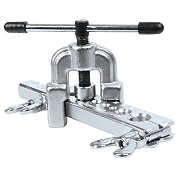 Unwieldy 70003 Heavy Duty Flaring Tool Features A Hardened Steel Flaring Cone With A Chrome Finish Providing More Uniform Flares Without Adhesive Wear Or Galling. The Long Handle Of The Yoke Can Be Used As A Lever When Tightening Due To The Forged Steel Swivel Type Self-Centering Yoke And Long Handle And Special Shaped Wing Nuts. The Hardened Steel Flaring Bar Grips The Tubing Without Scoring. This Tool Can Be Used For 45 Degree Flaring Of Soft Copper, Aluminum And Brass Tubing.
