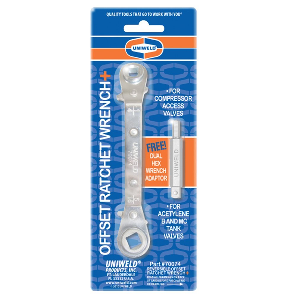 Uniweld 70074 Offset Ratchet Wrench + Free Dual Hex Wrench Upc 70074