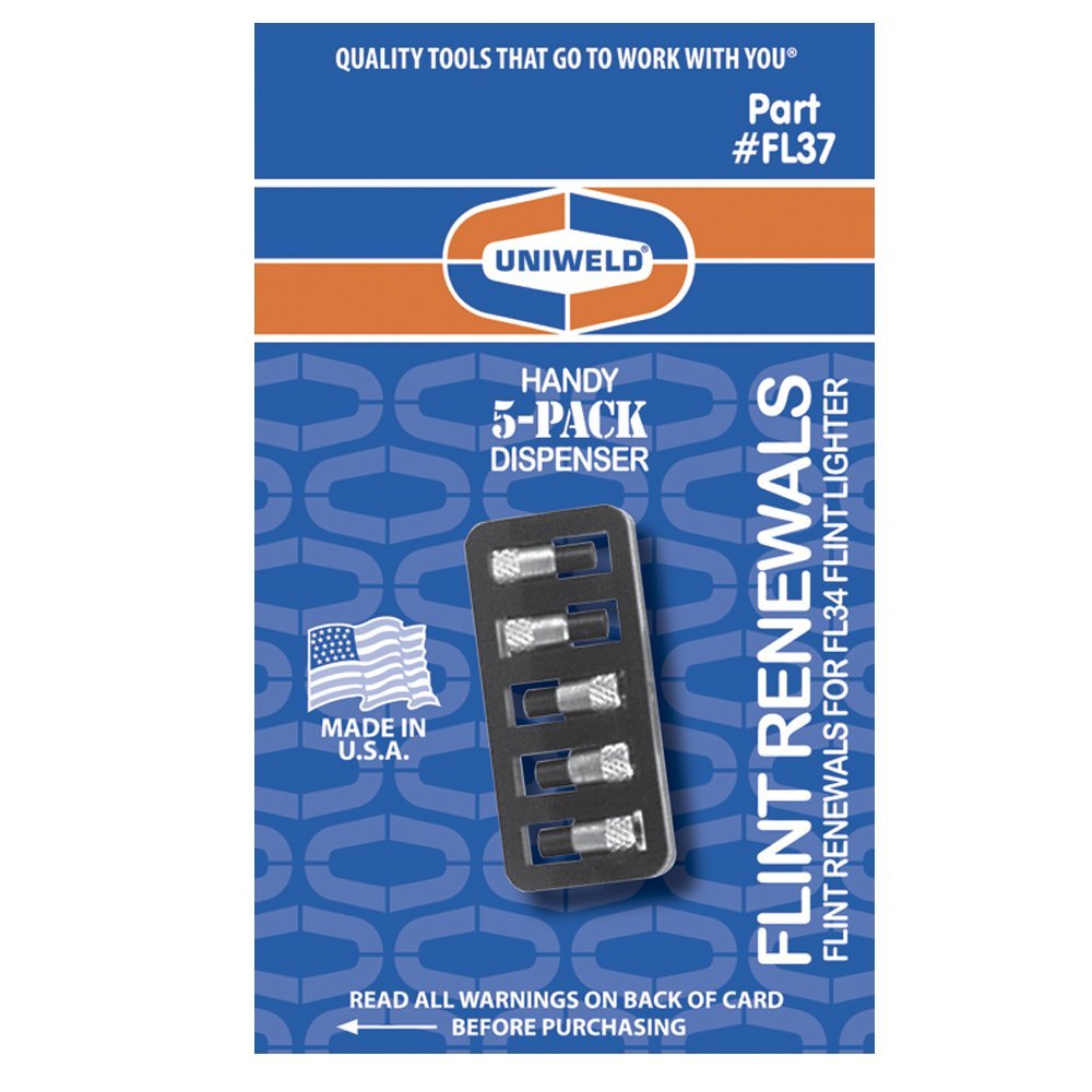 Uniweld Fl37 Five Flint Lighter Renewal Cartridges For Fl34 Has 5 Separate Flints Packaged On A Display Card.