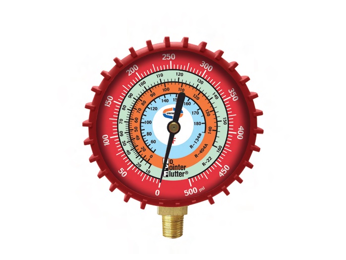 Uniweld G29D 2.5" Brass High Pressure Lpf Gauge, (Psi Øf) (R22/R404A/R134A) The Original Npf® No Pointer Flutter® Gauges That Provide Steady And Accurate Pressure Readings. The Encapsulated Silicone Dampened Movement Seldom Needs Recalibration. The Gauge Is Guaranteed Not To Leak Fluid And Not To Lose Dampening Characteristics. Scales Are Printed In Refrigerant Colors. On Display Card.