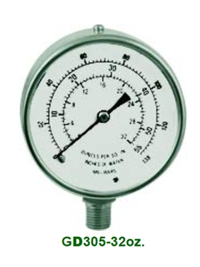 Uniweld Gd305 3 Inch Utility Gauge 0-32 Oz/In. Sq./55 Inch W.C. Upc 51020