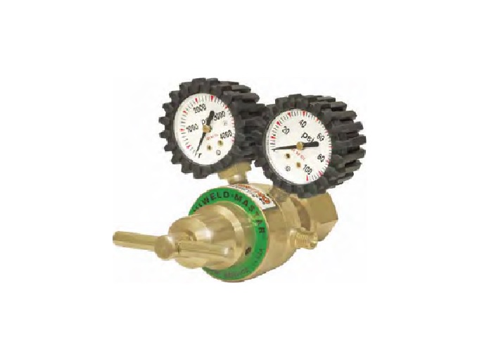 Mastar Rs Series - Light Duty Forged Brass Body Machined Brass Bonnet Easy-To-Read Single Scale 1-1/2" Gauges 1-5/8" Tri-Layered Reinforced Neoprene Diaphragm Mechanical Stem Type Seat Rear Inlet Cylinder Connection Porous Metal Inlet Filter T-Handle For Smooth Adjustment Blow Off Disc Type Pressure Relief For Low Pressure Gauge Protection Only Protective Rubber Gauge Boots