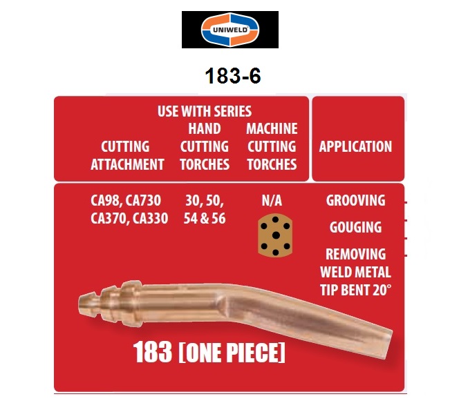 Uniweld 183-6 / Upc 35200 1 Piece Acetylene Cutting Tip Number 6 Minimum Order 1