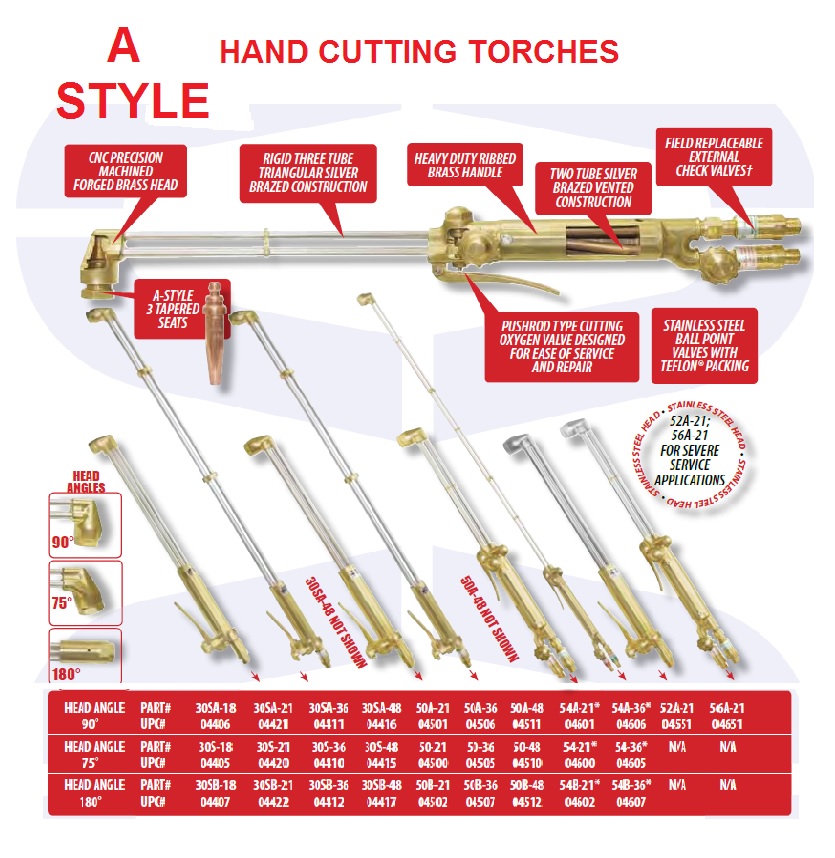 Uniweld 30S-16 / Upc 04400 Hand Cutting Torch 75Ø 16 Inch Bottom Rear Lever Acetylene/Fuel/Gas Mini