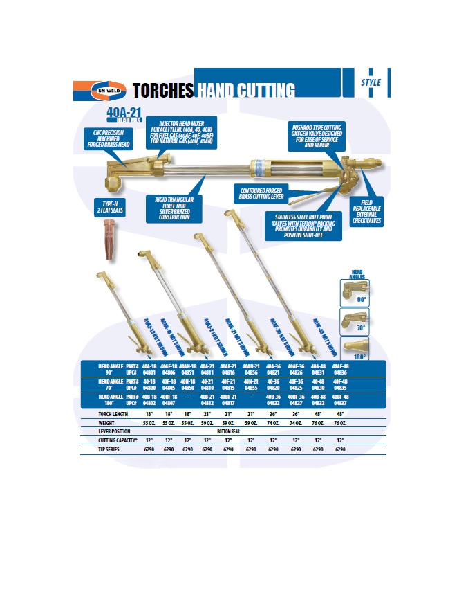 Uniweld 40-18 / Upc 04800 Hand Cutting Torch 70Ø 18 Inch Bottom Rear Lever Acetylene Minimum Order