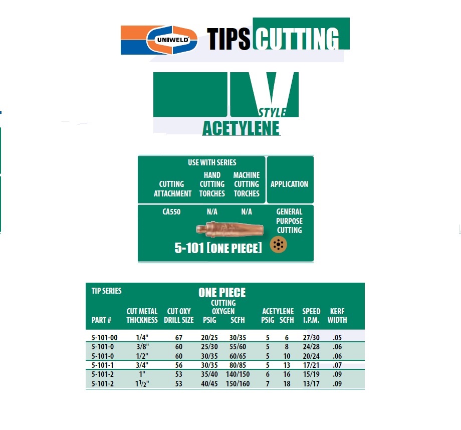 • 6 Preheats • Tips Fit Ca550 Cutting Attachment