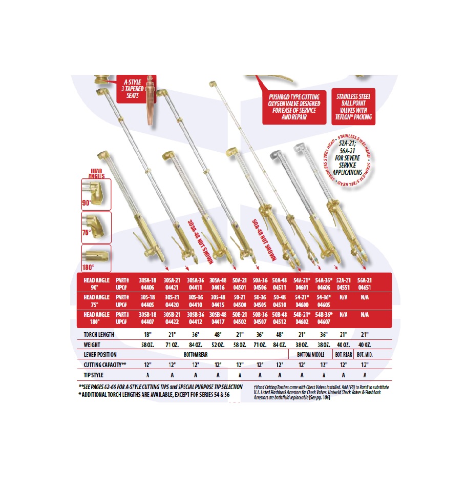 Uniweld 54-36 / Upc 04605 Hand Cutting Torch 75° 36" Bottom Middle Lever Fuel/Gas Minimum Order 1 Ne